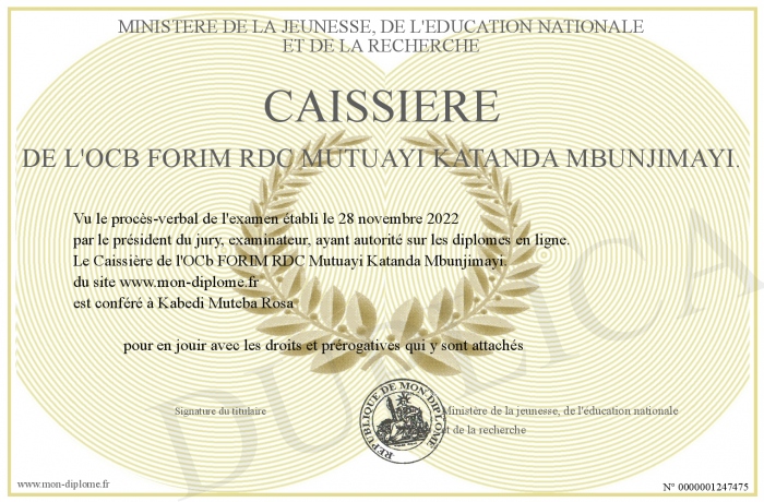 Envoyez par email votre Caissière de l'OCb FORIM RDC Mutuayi Katanda Mbunjimayi. personalisé