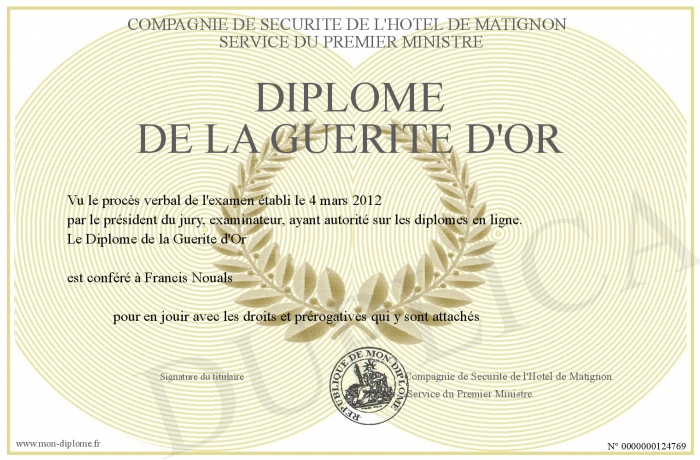 Envoyez par email votre Diplome de la Guerite d'Or personalisé