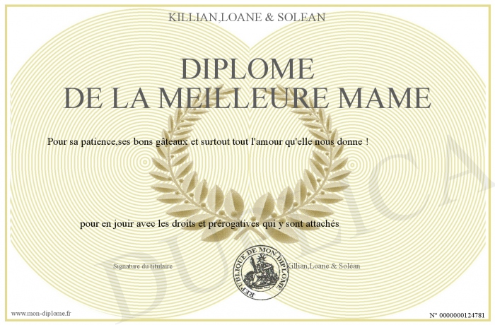 Envoyez par email votre Diplôme de la meilleure Mamé personalisé