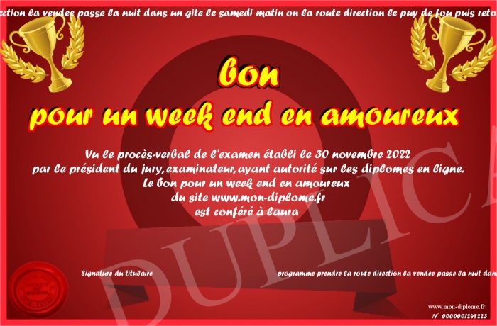 Envoyez par email votre bon pour un week end en amoureux personalisé