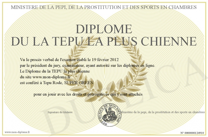 Envoyez par email votre Diplôme du la TEPU la plus chienne personalisé