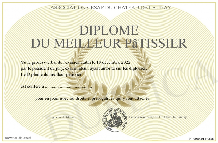 Envoyez par email votre Diplôme du meilleur pâtissier personalisé