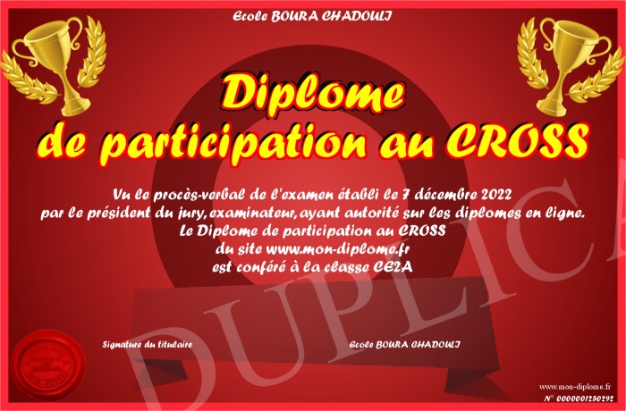 Envoyez par email votre Diplôme de participation au CROSS personalisé