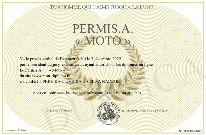 Envoyez par email votre Permis.A. « Moto » personalisé