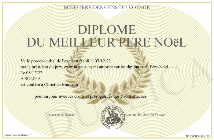 Envoyez par email votre Diplôme du meilleur Père Noël personalisé