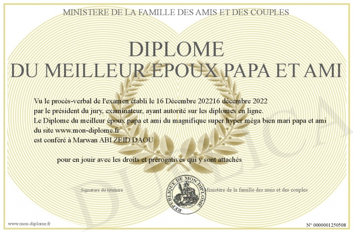 Envoyez par email votre Diplôme du meilleur époux papa et ami personalisé