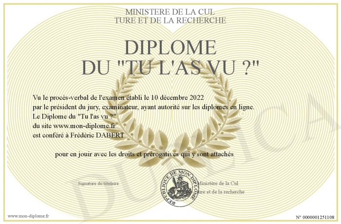 Envoyez par email votre Diplôme du -Tu l'as vu ?- personalisé