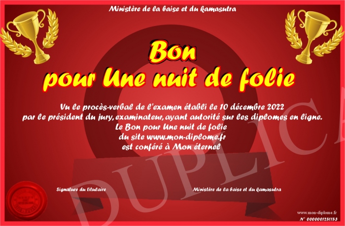Envoyez par email votre Bon pour Une nuit de folie personalisé