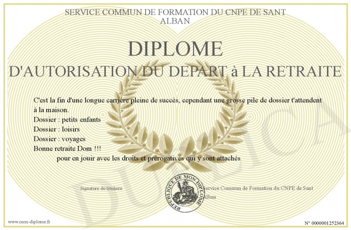Envoyez par email votre Diplôme d'autorisation du départ à la retraite personalisé