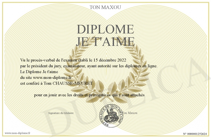 Envoyez par email votre Diplôme Je t'aime personalisé
