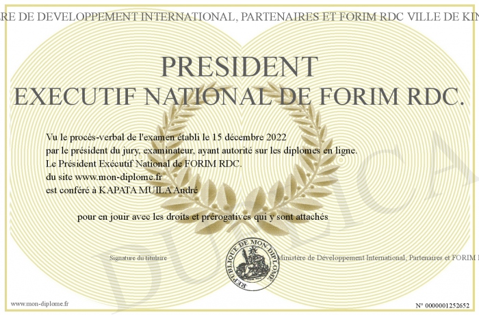 Envoyez par email votre Président Exécutif National de FORIM RDC. personalisé