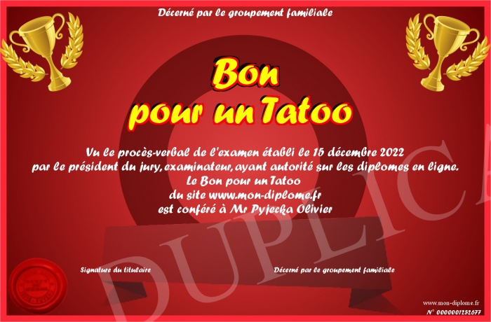 Envoyez par email votre Bon pour un Tatoo personalisé