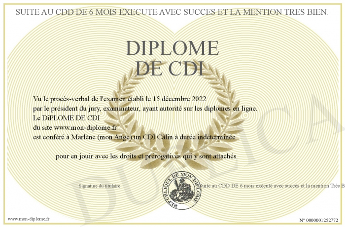 Envoyez par email votre DiPLOME DE CDI personalisé