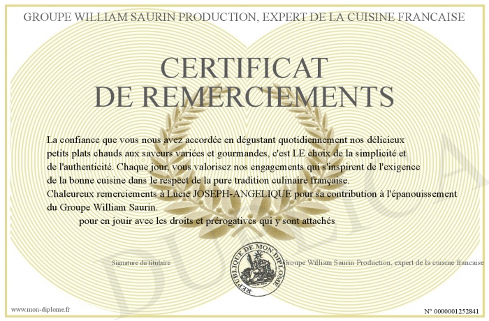Envoyez par email votre CERTIFICAT DE REMERCIEMENTS personalisé