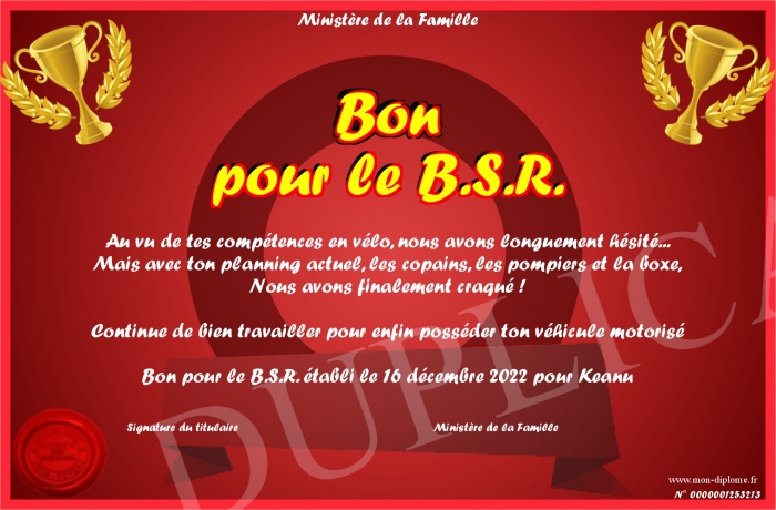 Envoyez par email votre Bon pour le B.S.R. personalisé