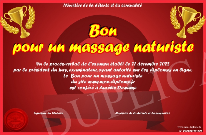 Envoyez par email votre Bon pour un massage naturiste personalisé
