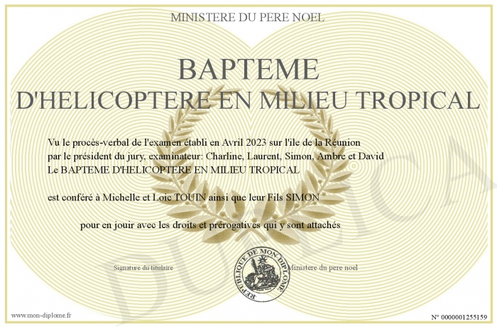 Envoyez par email votre BAPTEME D'HELICOPTERE EN MILIEU TROPICAL personalisé