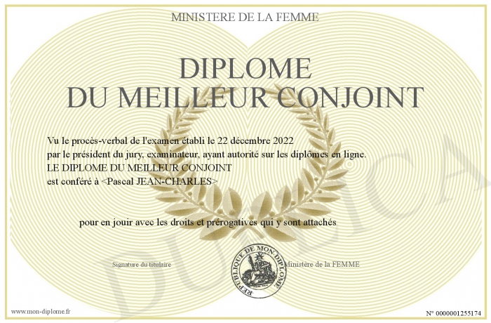 Envoyez par email votre Diplôme du MEILLEUR CONJOINT personalisé