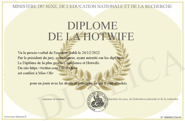 Envoyez par email votre Diplôme de la Hotwife personalisé