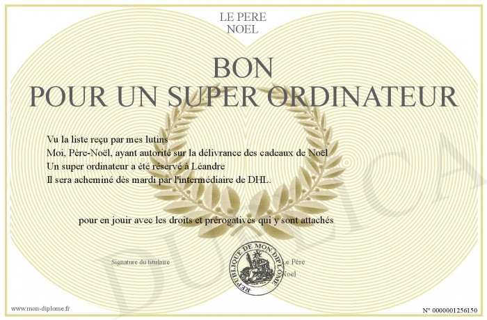 Envoyez par email votre Bon pour un super ordinateur personalisé