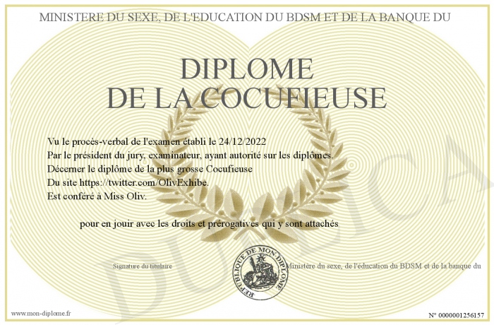 Envoyez par email votre Diplôme de la Cocufieuse personalisé
