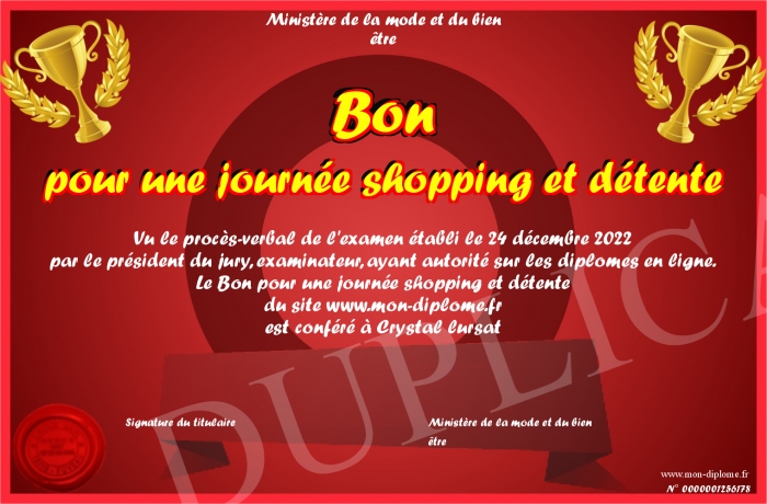 Envoyez par email votre Bon pour une journée shopping et détente personalisé