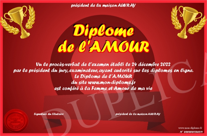 Envoyez par email votre Diplôme de l'AMOUR personalisé