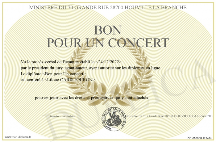 Envoyez par email votre Bon Pour Un Concert personalisé