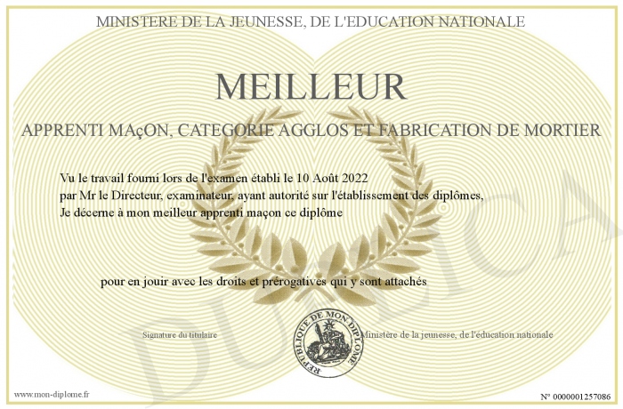 Envoyez par email votre Meilleur apprenti Maçon, catégorie agglos et fabrication de mortier personalisé