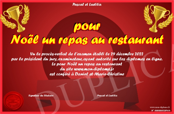 Envoyez par email votre pour Noël un repas au restaurant personalisé