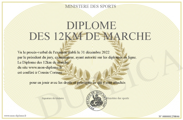 Envoyez par email votre Diplôme des 12km de marche personalisé