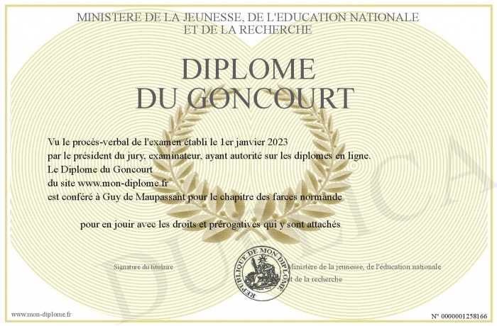 Envoyez par email votre Diplôme du Goncourt personalisé