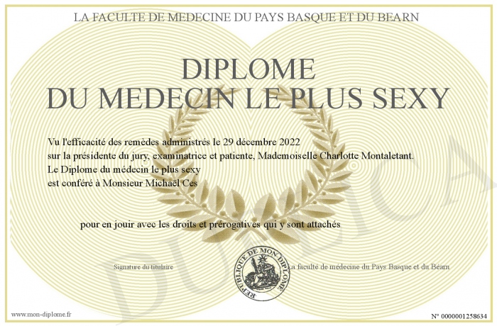 Envoyez par email votre Diplôme du médecin le plus sexy personalisé