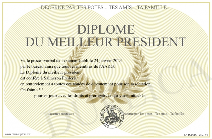 Envoyez par email votre Diplôme du meilleur président personalisé