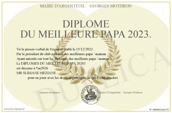 Envoyez par email votre Diplôme Du Meilleure Papa 2023. personalisé
