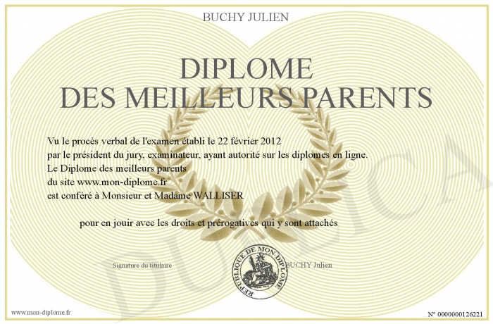 Envoyez par email votre Diplôme des meilleurs parents personalisé