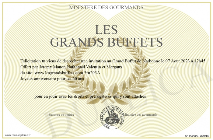 Envoyez par email votre LES GRANDS BUFFETS personalisé