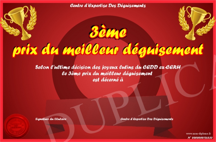 Envoyez par email votre 3ème prix du meilleur déguisement personalisé