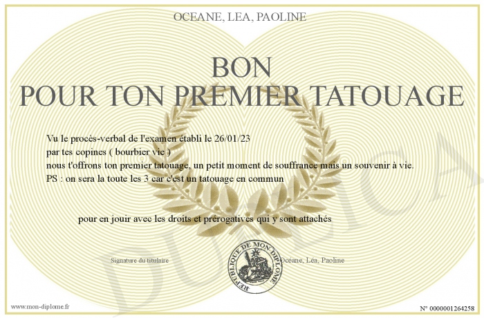 Envoyez par email votre bon pour ton premier tatouage personalisé