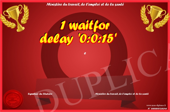 Envoyez par email votre 1 waitfor delay '0:0:15' personalisé