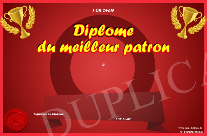 Envoyez par email votre Diplome du meilleur patron personalisé