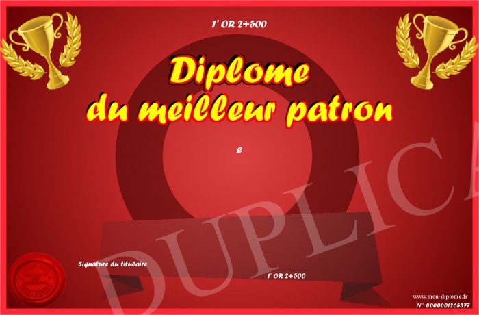 Envoyez par email votre Diplome du meilleur patron personalisé