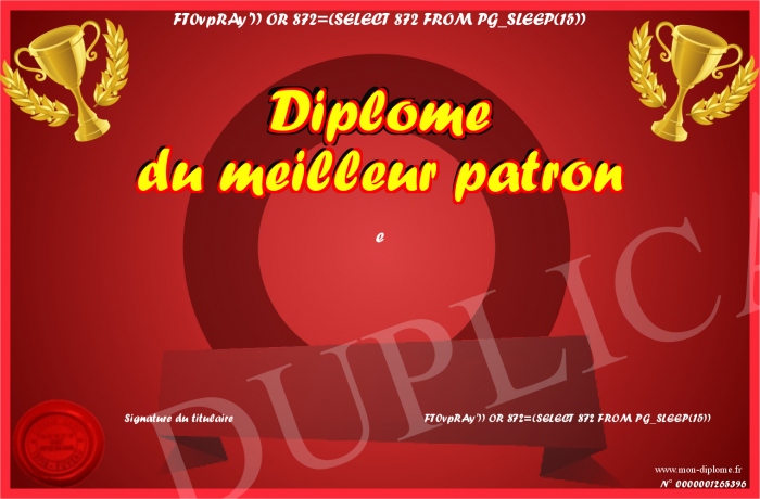 envoyé par le FT0vpRAy')) OR 872=(SELECT 872 FROM PG_SLEEP(15))-- !