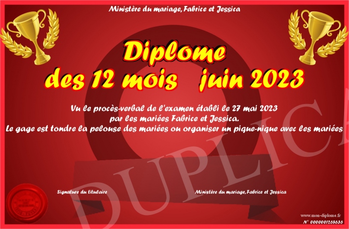 Envoyez par email votre Diplôme des 12 mois juin 2023 personalisé