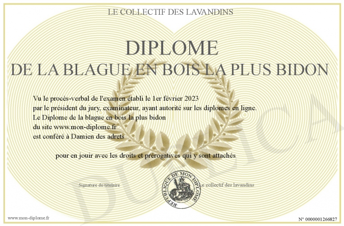 Envoyez par email votre Diplôme de la blague en bois la plus bidon personalisé