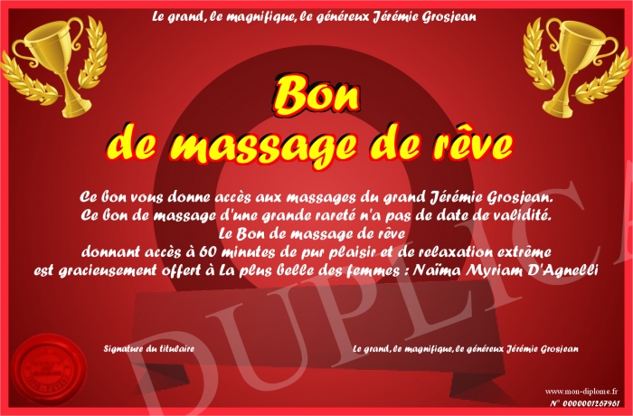 Envoyez par email votre Bon de massage de rêve personalisé