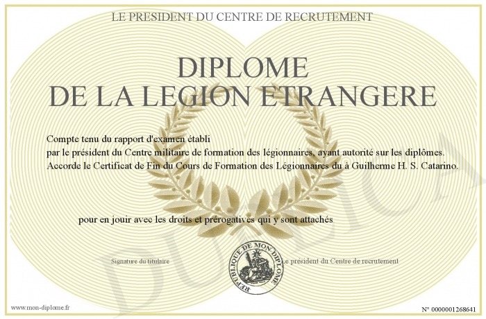Envoyez par email votre Diplôme de la Legion Etrangere personalisé