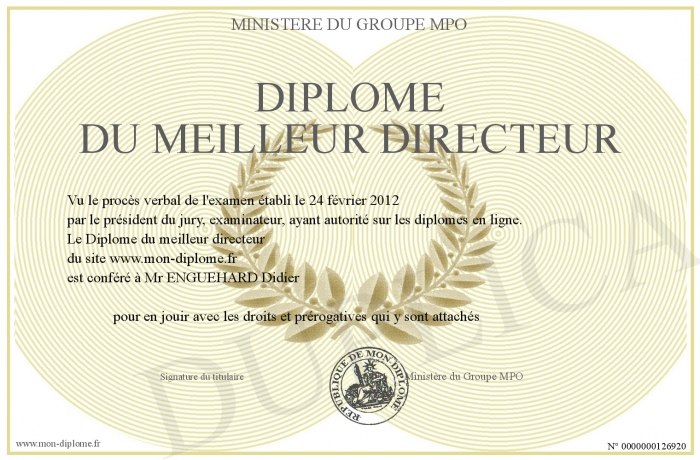 Envoyez par email votre Diplôme du meilleur directeur personalisé