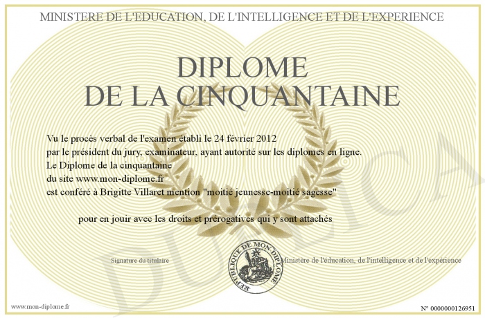 Envoyez par email votre Diplôme de la cinquantaine personalisé