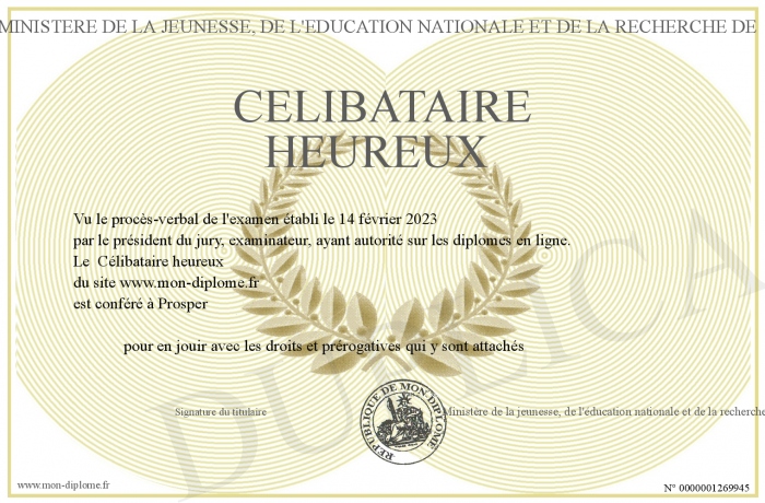 Envoyez par email votre Célibataire heureux personalisé